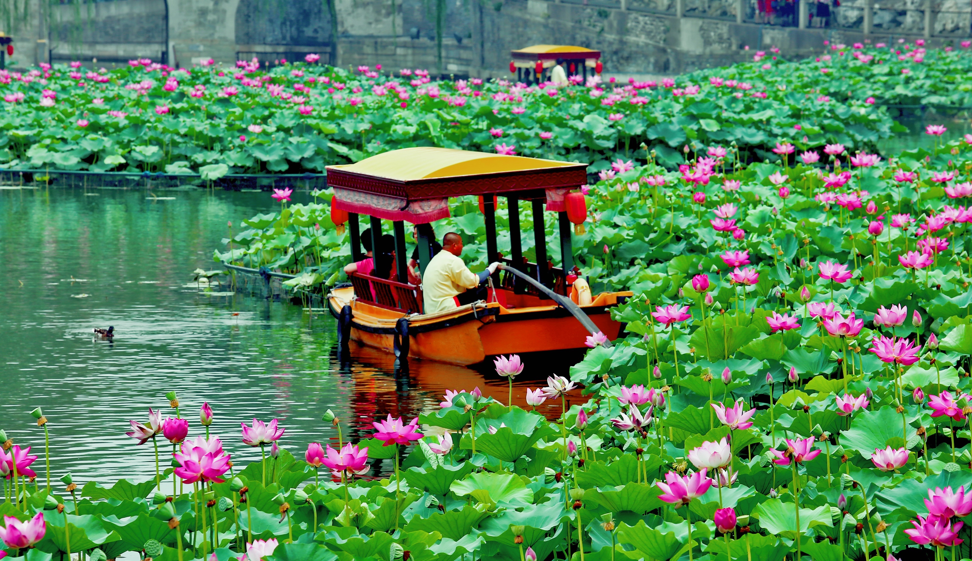 北海的太液池,水来自玉泉山,干净清洁,适宜划船,乘凉,是北京城内难得的一个天然的水上活动场地,地处北京中心。