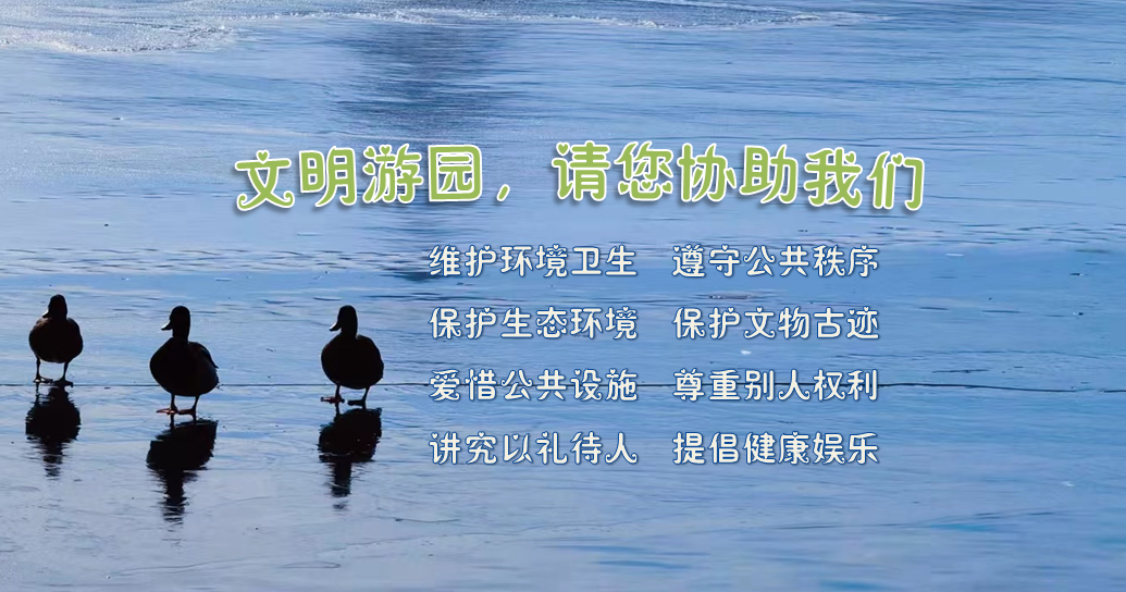8、 请您自觉维护公园湖水环境,禁止在园内水域投网捕鱼或钓鱼。